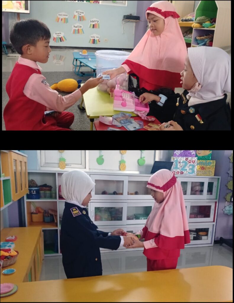 One highly effective activity is the “The Bakery Shop” role-play, where children take on the roles of the seller and the buyer, using simple English phrases. Through this simple game, several important moral values and language skills can be honed. Developing Empathy and Social Communication for example as the seller: the child learns to be friendly (“Hello, welcome to my shop!“), listen to the buyer’s needs (“What kind of cake would you like?”), and understand the perspective of someone requiring a service (cultivating love for one’s fellow human beings in the form of service). As the buyer: The child learns to wait patiently, communicate politely (“May I please have a muffin?”), and understand rules (practicing social communication). Instilling Honesty for example this scenario provides a golden opportunity to practice honesty. For example, when the seller makes a mistake in calculating the change (“Here is your change, 5 dollars.”), the child is encouraged to be truthful (“Oh, wait! I think you gave me too much change.”). This honesty is reinforced by the buyer’s honest role in reporting excess or insufficient money.